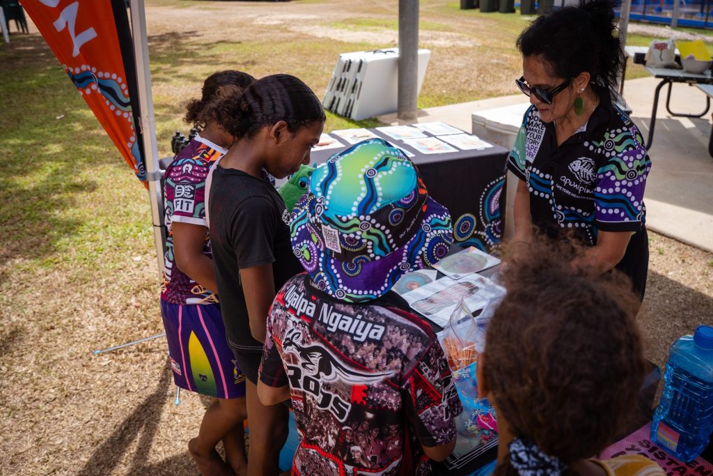 Apunipima’s Tackling Indigenous Smoking and Health Promotion teams ran fun activities such as Smokes and Ladders and Connect Four, alongside practical education on brushing teeth, men’s and women’s health, FASD and more. Apunipima’s Thimithi-Nhii Primary Health Care Centre (PHCC) provided information on the clinic and services we provide to the community. The team spent the day yarning with community members, answering questions and making services visible in a fun and friendly way.